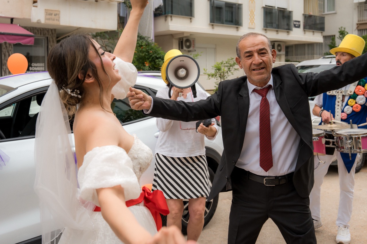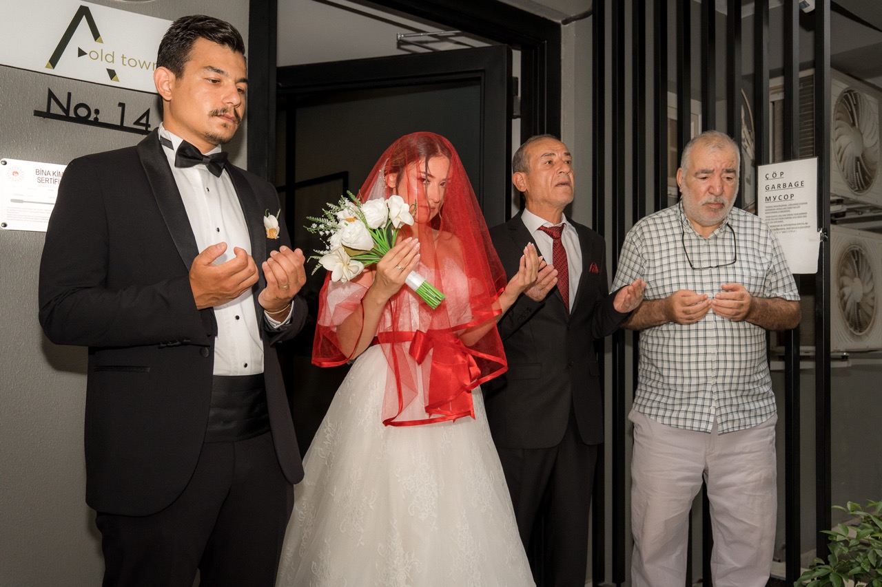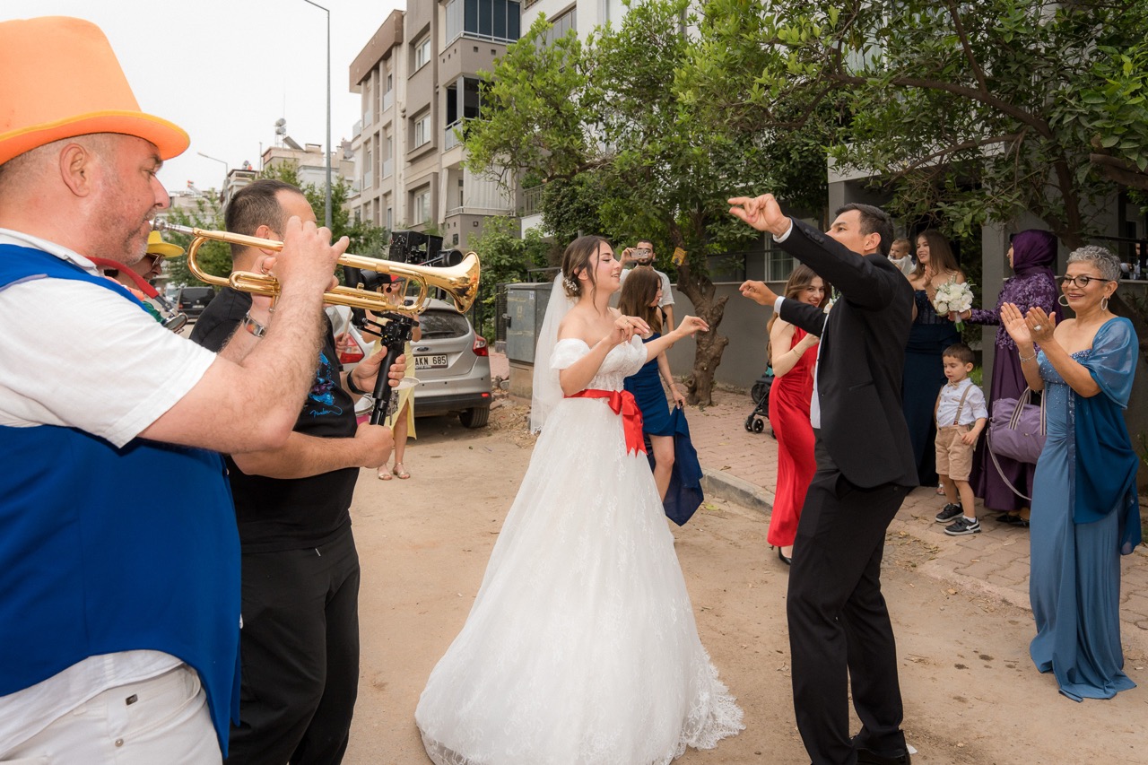 Umut’un kapı önünde beklediği ve Gül’ü dualarla evden çıkardığı duygusal anlar, araç çıkışı ve konvoyun coşkusunu, geniş açıdan ve elde stabil çekimlerle yakaladık.